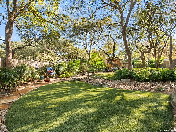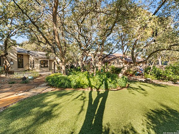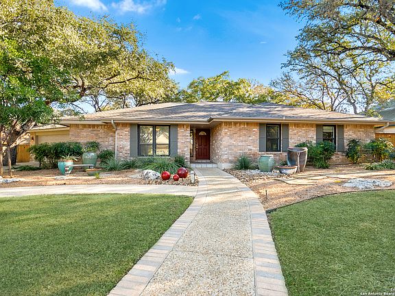 Beautifully maintained one-story gem beneath mature oaks in desirable Vista del Norte. The 3 bedroom, 2.5 bath, open floor plan has a private study/flex room, high ceilings, hardwood flooring, crown molding, brick fireplace, built-in book shelving and floor-to-ceiling windows for wonderful, natural light. The spacious kitchen offers quartz counters, stainless appliances, built-in microwave and a timeless cabinet style. The primary bedroom, with outdoor access, has plenty of closet space with the updated bathroom having quartz counters and a step-in shower. Two secondary bedrooms, split from the primary bedroom, allow for privacy near the front of the house. In the backyard, you will enjoy the beautifully manicured landscape with multiple sitting areas, turf grass, mature trees, storage shed and plenty of room to run around. All of the windows in the house have been replaced with triple panes. Additional features include a large utility room with storage, 2-car oversized garage. Trane HVAC, water heater and roof all replaced within the last 5 years. Situated conveniently, the home is within walking distance to the Vista del Norte swimming pool and falls within the acclaimed North East Independent School District (NEISD). Easy access to Wurzbach Parkway, IH10, 281 and 1604 ensures effortless commuting and exploration of nearby attractions, with shopping and dining options conveniently nearby.