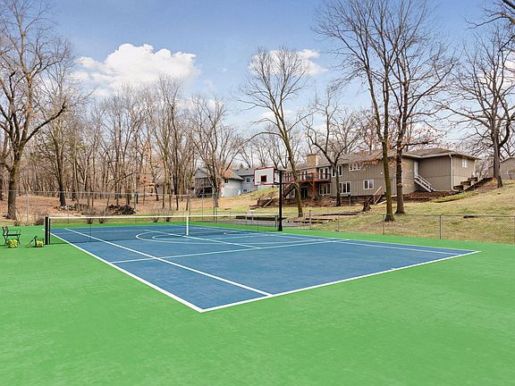 Nestled at the end of a private cul-de-sac on a wooded 2-acre lot, this 5-bed, 4-bath Apple Valley home is a true retreat. With over 3,300 sq ft of living space, enjoy vaulted ceilings, a spacious open floor plan, a beautifully updated kitchen, and a newly remodeled main floor bath. The primary suite includes an office/bonus room, walk-in closet, and tile bath. Entertain with ease on the expansive maintenance-free deck, lower-level walkout patio, and your own fenced sport court ready for tennis, pickleball, basketball, and more. The finished lower level boasts 3 bedrooms, a wet bar, family room with fireplace, and game area. Updates include newer windows, 2024 carpet, 2024 entry-way tile, HVAC, and 2025 radon system. A 3.5-stall garage, beautiful landscaping, and unbeatable location just minutes from top schools in district 196, the Minnesota Zoo, parks, and shopping make this home truly special.