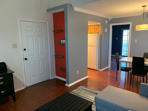 Remodeling just completed for this one bedroom and one bathroom fully furnished corner Condo unit and is available now. In addition to the 1 bed and 1 bath, there is a 60 sq ft flex living space with a beautiful balcony view of the swimming pool. Updates include new microwave, custom painting, wood laminate flooring throughout, crown molding, and new hardware throughout. Vaulted ceilings in the living room and wood burning fireplace. Condo is fully furnished and is included in lease price. Furnishings include professional decor throughout with the exception of the master bedroom. The living area includes a desk, nook table, sofa that makes into a bed, decorative floating shelves, and more.... Condo has a laundry room and includes a washer and dryer. Ideal location for Richardson ISD. Ready for move-in. Will consider Section 8. This condo won't last long so don't wait.
