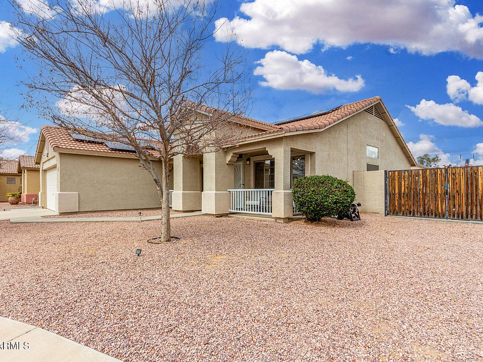 This meticulously maintained 4-bedroom, 2-bathroom home in Surprise, AZ offers exceptional upgrades and a prime cul-de-sac location. The fully landscaped backyard features grass, gravel, pavers, and a new extended cement slab behind the wide RV gate for added parking. Inside, enjoy refinished kitchen and bathroom cabinets, NEW stainless steel appliances, and a brand-new HVAC system in time for the summer! The open-concept kitchen seamlessly connects to the family room, ideal for entertaining. The master suite includes a walk-in closet and a full bathroom equipped with double sinks, separate shower and a garden tub. Additional features include newer blinds and an epoxy-coated garage with storage ceiling rack. This home is a standout and move-in ready— Won't last!
