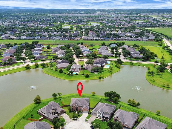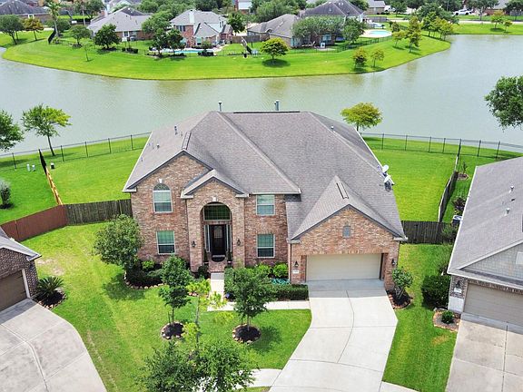 Open concept interior with plenty of natural light and high ceilings. Crown moldings with elegant built-ins in the family room. Kitchen boasts a large island with sink that opens to the family room, perfect for entertaining. Primary bedroom on the first floor with a luxurious double vanity full bath and new frameless glass shower. Second floor has 4 bedrooms; each w/ ceiling fans. Second floor also includes a game room & media room. This home has extra storage space in it's large garage. The refrigerator & water softener are included. Great location, easy access to hwy 6 & 288. Don't miss your opportunity to call this STUNNING property HOME!