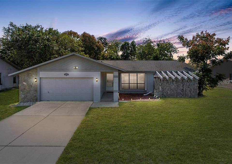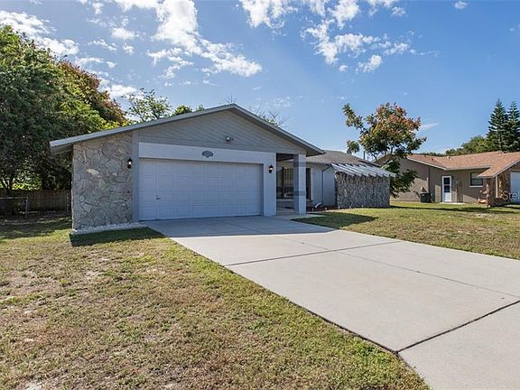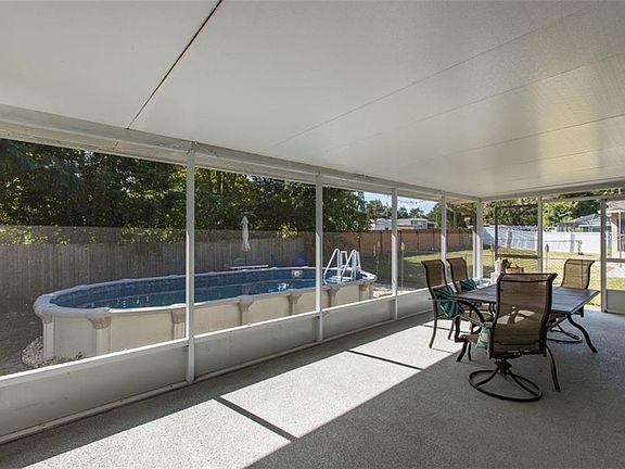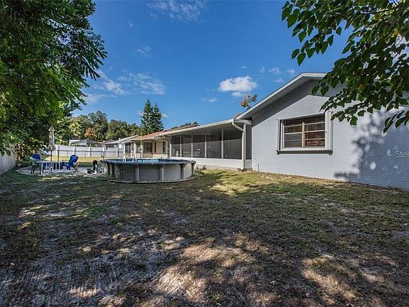 Florida life at its best! This comfy 2/2/2 in the desirable subdivision of Windsor Mill is on a nice fenced in lot with a large screened in porch overlooking the refreshing sunken above ground pool (2019) The open concept of the Kitchen, Living room, Dining room and Sitting room is ideal for entertaining. Tile flooring throughout the living areas, carpet in the bedrooms, inside laundry, crown molding and hurricane shutters are just a few of the nice features this home offers. Great location with No through traffic, No HOA, No Deed Restriction and close to shopping, Hospital & Hudson Beach. Schedule your showing today!