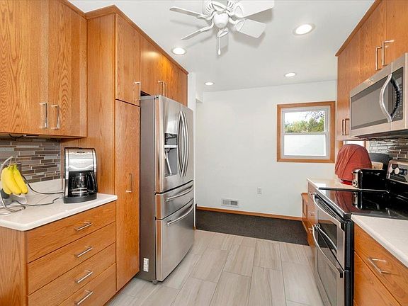 Charming Multi-Level Bungalow: Surprisingly Spacious and Stunningly Updated! Step inside this deceptively spacious multi-level 2+ bedroom bungalow and prepare to be amazed. Boasting a fantastic floorplan and open-concept design, this home seamlessly blends modern updates with timeless charm. The remodeled kitchen, completed in 2017, effortlessly expands into the informal dining room, creating a perfect space for entertaining and gatherings. The main level features a large bedroom and a beautifully updated full bathroom, providing convenience and comfort. Upstairs, you'll discover a finished bungalow-style bedroom with ample storage, offering a cozy and private retreat. The mostly finished lower level presents a versatile space that can easily be converted into a conforming third bedroom. With three levels of finished living space, this home offers endless possibilities to suit your needs. Updates abound throughout this property, including a newer furnace and central air system installed in 2015, an addition to the garage completed in 2021, and the installation of solar panels on the garage roof in 2023. The pride in ownership is evident, making this one of the most efficient homes you'll find. Outdoor enthusiasts will love the covered patio, perfect for relaxing or entertaining guests. The large storage shed and fenced yard provide ample space for all your outdoor needs. Plus, the property produces delicious Honeycrisp apples and raspberries, adding a touch of nature’s bounty to your daily life. Don't miss the opportunity to own this efficient dream home. Schedule a showing today and experience the charm and convenience this bungalow has to offer!