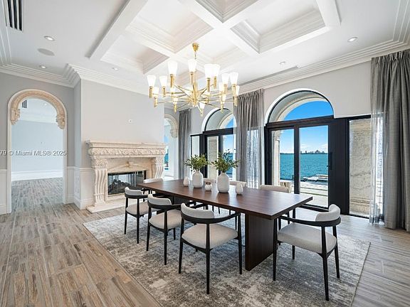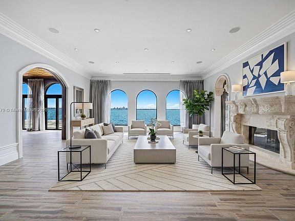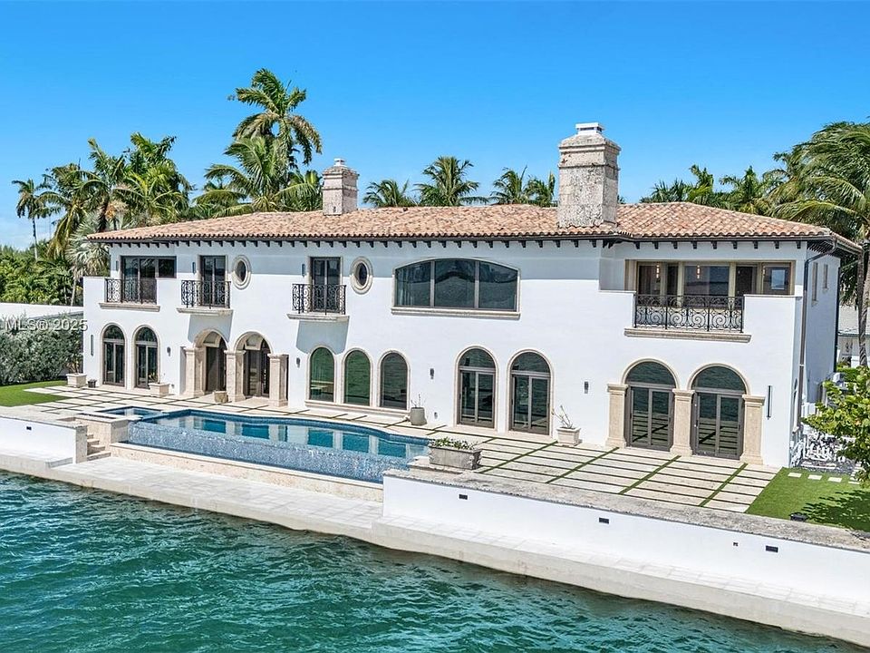 Exceptional Bayfront Mediterranean villa delivering luxury waterfront living with south exposure and one of Miami's most panoramic skyline views on exclusive, gated North Bay Island. Fully fenced, this 7,531 SF mansion offers 6 bedrooms, 5.5 baths, boasting 118 ft of waterfrontage for privacy and stunning bay views. An expansive deck showcases a 40+ft infinity pool ideal for enjoying Florida sunsets. A covered outdoor entertainment room creates seamless indoor-outdoor living. Inside, sun-filled interiors flow among living, dining, gourmet kitchen (with dual appliances), classic library, and media room. The sculptural staircase rises to the bedrooms, which include two primary suites private terraces. 2-car garage + 2 gated driveway pkg. Available now, unfurnished, 1-year minimum, renewable.