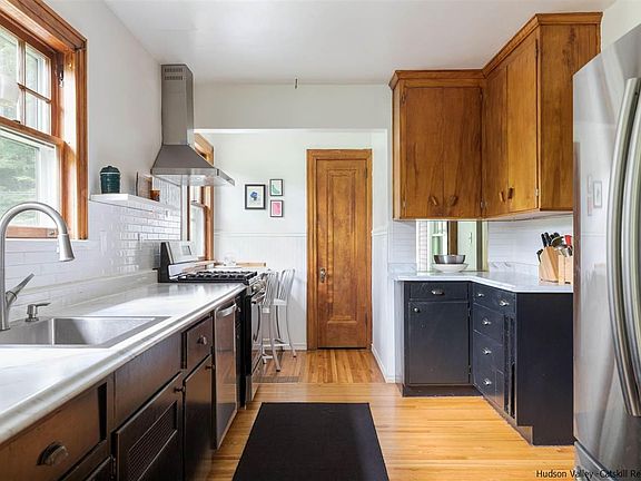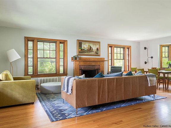Filled with tons of charm and original character, this lovely home includes 300 ft of coveted river frontage on the world-famous Beaverkill River, making it a fly-fishing dream come true! With 5 bedrooms, this home is perfectly set up for anyone who loves to host. The layout of the main living floor lends itself to entertaining, with a large living/dining room that’s full of warmth from the original woodwork, wood flooring, and fireplace. Large windows capture all of the natural light and frame the river in the distance. The bright and charming kitchen has plenty of room for cooking and gathering with a breakfast bar and pantry closet. There are more rooms to enjoy on the ground floor including a wood-paneled library/office, a small enclosed porch/sunroom, and a bright sitting room that is ideal for reading, creating art, or for use as an additional work from home space. Upstairs are 5 restful bedrooms, each with its own unique character, and 2 spectacularly vintage bathrooms. The property extends across the road to the Beaverkill where one can enjoy lazy days on the river fly fishing or just taking in the natural beauty. Next to the home itself there’s also a large level yard for any outdoor activities. Additionally, a detached 3-car garage provides a great deal of space for storage and vehicles as well as all of the equipment needed to enjoy outdoor activities in the area. The home is perfectly situated just 10 mins to Roscoe and 20 mins to Livingston Manor, two thriving upstate towns, for dining and shopping at any of the numerous adorable stores and restaurants there. And, if fly fishing in your backyard weren’t enough, hiking trails, state parks, and other opportunities to enjoy nature abound, all while being just 2 hours from the GWB! Note: While the home is in a flood plain, the last time there was any water intrusion in the unfinished basement was during a major flood in 2006. Flood insurance is required and the current owners pay $2,363/yr for coverage.