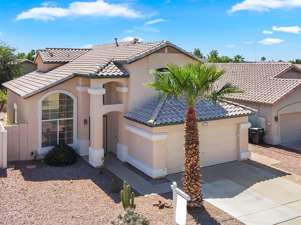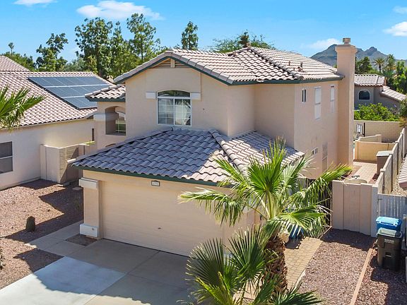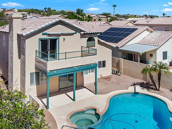 Beautifully updated 4-bedroom, 3-bath single family home with no HOA! Featuring a 2-car garage and a smart layout, this home offers a bedroom and full bath on the first floor—ideal for guests or multi-gen living—while two additional bedrooms (w/ jack n jill bath), plus the primary suite, are upstairs. The updated kitchen has stone counters with an undermount sink, complemented by tile flooring in the living room, tiled balcony off primary, & fresh interior paint. All new upstairs flooring. Stone Fireplace in living room. Washer & dryer included. Step outside to your private backyard retreat w/ a sparkling pool and spa, perfect for relaxing or entertaining. Prime location near shopping, dining, & entertainment—minutes from Desert Ridge, the Promenade, & with quick access to Hwy 51/Loop 101