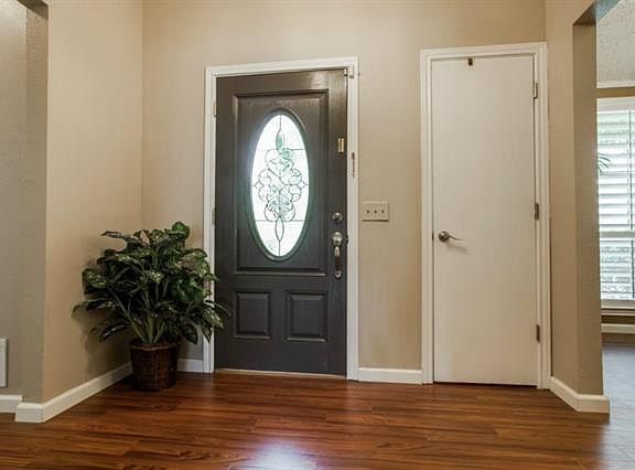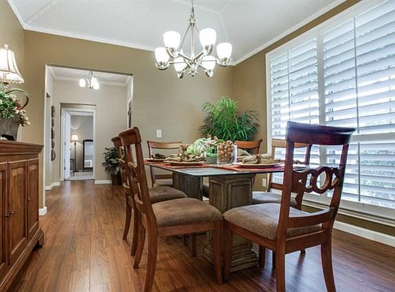 Almost .33 of an acre; drive up to Plantation Shutters across the front of this home on corner lot; interior like Restoration Hardware;beautiful light & bright kitchen with white tile counters and cabinets, wood laminate floors, beautiful marble in bathrooms, cheery sunroom, two living areas--you'll love this one. Close to 75, G Bush, State Farm,TI, Huffines Park Recreation Ctr ,Hike+Bike Trails, DART Arapaho Station