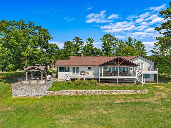 This exquisite ranch-style retreat, nestled on what is often described as the most picturesque spot on Douglas Lake, offers unparalleled beauty and convenience. Enjoy mesmerizing Douglas Lake and Smoky Mountain views from nearly every vantage point. One of the only settings on Douglas Lake that gives you beach-like oasis. Located just a short drive from the quiet, historic town of Dandridge, and with easy access to Knoxville, The Great Smoky Mountains National Park, and the endless entertainment of Pigeon Forge, Sevierville, and Gatlinburg, this property truly has it all. Plus, I-40 at Exit 412 is just minutes away. The main house features 3 bedrooms and 2 full baths, designed for effortless living. An optional room provides flexible space for crafts or a home office. The updated kitchen boasts stainless steel appliances, double ovens, solid surface counters, and a smooth electric cooktop. Lake and mountain views grace the kitchen, living room, and primary bedroom. The living room exudes warmth with a stunning stone fireplace and beamed wood ceiling, while the primary bedroom offers an elegant trey ceiling. The property is fully fenced with remote gate access for privacy and security. A fully renovated 676 sq ft guest house provides a private oasis for visitors, complete with a separate living area, private bedroom, and a spacious full kitchen. This gourmet guest kitchen features soft-close cabinet doors, quartz counters, stainless appliances, and a large island with ample seating. For the hobby enthusiast, a newly constructed 45x48 (2160 sq ft) workshop/garage offers abundant space for all your lake toys and more. Lakeside, a covered, permitted dock with side decking and jet ski ports awaits your aquatic adventures. This is more than a home; it's a lifestyle. Also has newly installed basement waterproofing system installed by AFS with transferable warranty.