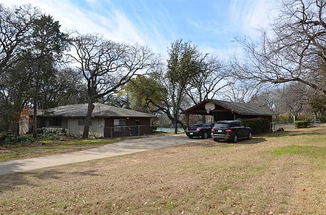 Located on over 2 acres of land with lg. trees - a rare find in Irving. An open floor plan has a dining room, living room, and a den with a wood burning FP. A second dining is in the large kitchen. Split bedrooms have two master bedrooms - all three bedrooms have adjoining full bathrooms. The 20x20 carport and 20x16 workshop are located in a detached bldg. There is a Barn for Horses - Horses are allowed. A Pool is located in the back yard.