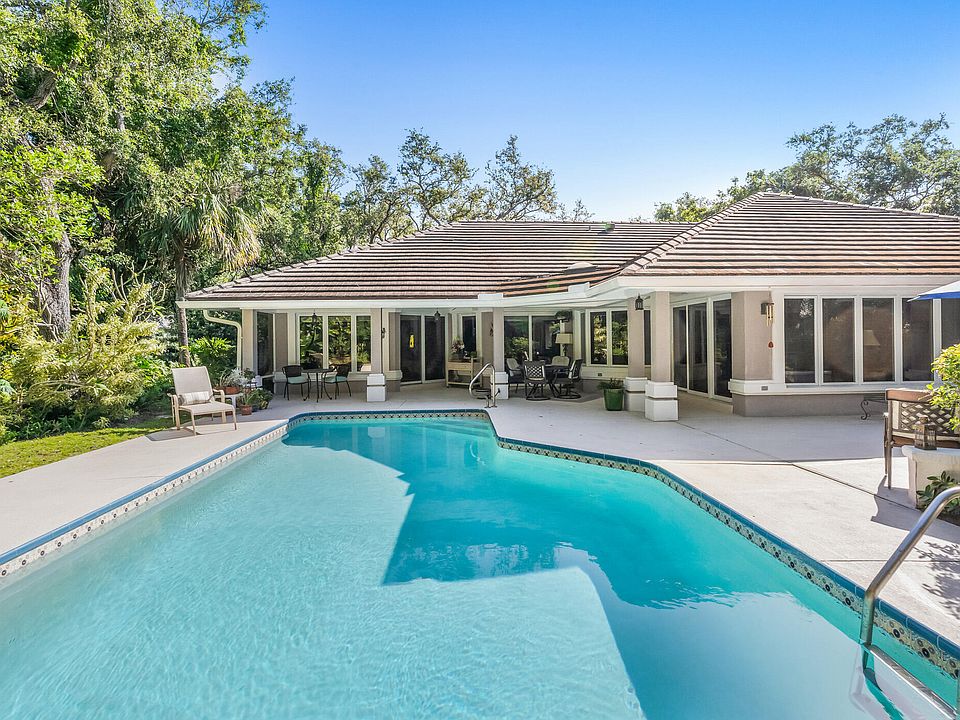 Concrete Block Construction, 2015 Tile Roof and situated on a gorgeous very private lot. This spacious home offers an open, flowing floor plan that overlooks a fabulous outdoor area with covered porch and large family pool. Complete with vaulted ceilings, big kitchen, breakfast nook, living room/wet bar, formal dining room and a huge primary suite that opens to the pool. The oversized two car garage will accommodate a golf cart. Scoot over to the private beach access or enjoy riverfront sunsets in the community park. Near St Edwards and Beachland school district. Less than 2 miles to the bridge.