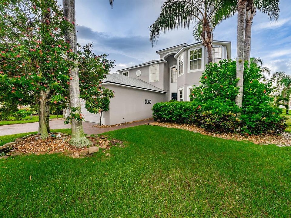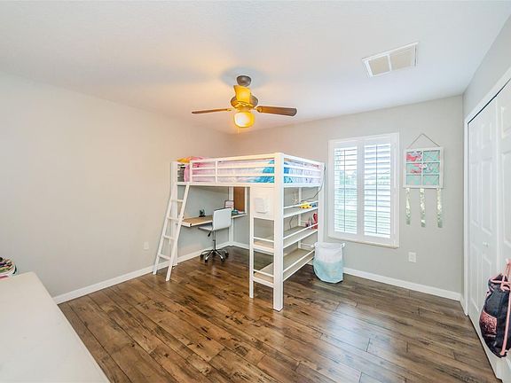 Nestled on a serene cul-de-sac, this enchanting Trinity residence epitomizes tender loving care with its thoughtfully designed open floor plan. Recent upgrades include a suite of top-of-the-line LG kitchen appliances, two new A/C units with generous ten-year warranties, a tankless water heater, a salt pool pump, and freshly sealed exterior pavers. Boasting 4 bedrooms, 3 full bathrooms, and a spacious three-car tandem garage, this home offers both comfort and practicality. The meticulously manicured landscaping, adorned with palm trees and vibrant bougainvillea, creates a captivating oasis, perfect for relaxation and entertainment. Step into luxury as you lounge by the inviting open pool, surrounded by beautifully laid brick pavers. Inside, the gourmet kitchen features elegant granite countertops and oversized tiles, complemented by Brazilian Cherry wood flooring throughout the main areas and staircase. Upstairs, discover plush flooring adorning all four bedrooms, each boasting custom-built closets and upgraded plantation shutters. With a recently replaced roof and high ceilings enhancing the sense of space, this home ensures worry-free living. Situated in a top-rated school district and mere minutes from Fox Hollow golf course, this residence offers convenience and luxury in equal measure. Enjoy easy access to shopping, dining, major highways, places of worship, and stunning beaches, making every day a delightful retreat.