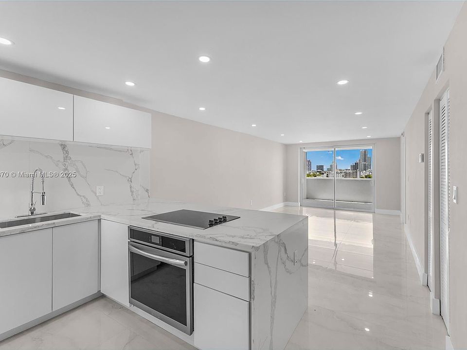 Experience spectacular Bay and Downtown Miami views from this never-lived-in, fully remodeled condo on Lincoln Road. This 2-bedroom, 2-bath residence features brand-new porcelain floors, stainless steel kitchen appliances, modern kitchen cabinets and quartz counters, washer & dryer, impact windows and a new AC system. Every inch has been remodeled. Enjoy a spacious terrace perfect for taking in ocean breezes and stunning city and bay vistas. Ideally located just one block from Trader Joe's and the vibrant shops, dining, and entertainment of Lincoln Road, with the Venetian Causeway nearby for scenic biking and walking routes. Listed by Cayhill Dumott Realty LLC. Courtesy of MLS. VIP Real Estate LLC., licensed Florida real estate brokerage.