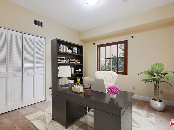 Rare Opportunity to live in a 4-bedroom with two primary suite bedrooms! Stunning, Spanish-style townhome ideally situated in coveted Hollywood, this is your opportunity. This residence boasts a secure gated entrance leading to a landscaped central courtyard, as well as a private, huge direct-access 2-car garage. Inside, you'll be welcomed to the foyer leading to a spacious living room featuring a fireplace and beamed ceiling. Your chef's kitchen is equipped with a Viking cooktop, granite countertops, and richly stained cabinets. The second floor showcases a sizable primary bedroom equipped with 2 separate closets with an ensuite bathroom. Also on the second floor, you'll find two more bedrooms sharing a full bathroom, complemented by convenient in-unit laundry. Upstairs, on the third floor lies your second primary suite, featuring two separate closets and French doors opening to a private 400 sqft rooftop patio. The ensuite primary bath features both a separate shower and tub, plus dual sinks for added luxury. Conveniently located near restaurants, grocery stores, and shopping, this home offers a lifestyle of ease and comfort. Experience unparalleled charm and sophistication in this exceptional property with all the features of single-family home living in a quiet, tranquil 10-unit complex with comparatively low HOA fees.