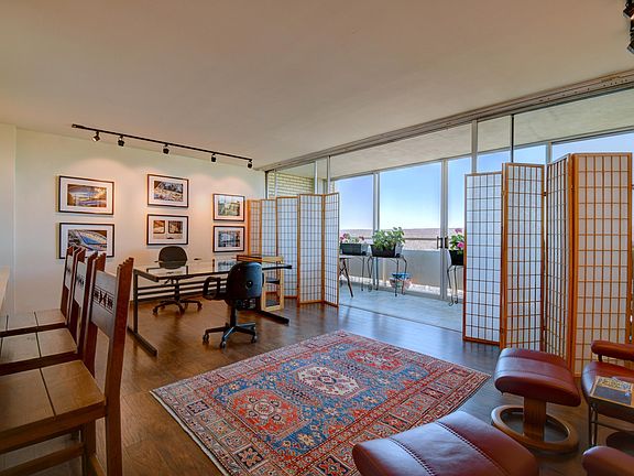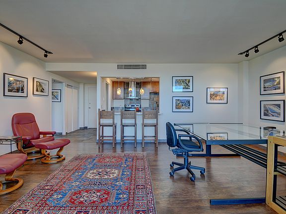 This gorgeous 1 Bedroom and 1 Bath home is yours from a desirable historic downtown Albuquerque metro neighborhood. Enjoy breathtaking unobstructed West facing views from the Living Room across Country Club area to the Volcanoes. The Kitchen is a chef's delight which includes a Breakfast Bar that opens to the Living/Dining Room. No Carpet. Flooring renovated throughout with Wood and Slate Tiles, and the Bath and Shower were meticulously updated. HOA covers all utilities, building upkeep, covered reserved secure gated parking. Each floor has its own Laundry, and extra secure storage. 24-hour Security and Concierge Desk accommodates all visitors and deliveries. Easy access to Old Town, Downtown, UNM, Hospitals, KAFB, and Sandia Labs. Home is move in ready.
