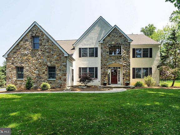 Beautiful & well-maintained home in bucolic Chester Springs backing to dedicated open space & conveniently situated to downtown Phoenixville & Great Valley corporate center. 1st floor: covered front entry; 2-story foyer; oversized study; living room with crown molding; dining room with crown molding and chair rail; bumped-out Island kitchen with 42" white cabinetry, recessed lighting, KitchenAid appliances, gas cooking, pantry; breakfast area with slider to deck; Great room with floor-to-ceiling stone gas fireplace and rear staircase; laundry room; powder room; & 3-car garage with oversized doors & generator connection. 2nd floor: Master suite with ensuite bath (dual vanities, soaking tub, shower), oversized walk-in closet, tray ceiling. Two secondary bedrooms (the larger of which has 2 closets and a sitting room) share a dual vanity Jack 'n Jill bath. 1 additional bedroom served by a full hall bath. Basement: 9' basement with egress. Lower zone HVAC replaced 2019. Downingtown East schools. Walk to Binky Lee Preserve. Schedule your preview today!