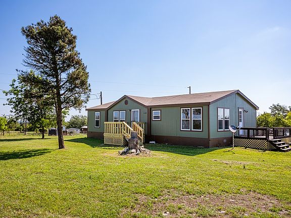 This sweet little house is a cute as button and great curb appeal ! Just Shy of 5 Acres- fully fenced for your 4H/ FFA Projects. Property also has a nice sized Red barn and greenhouse. 3 Bedrooms, 2 baths, completely updated as well. Kitchen is open to living room and dining room & has beautiful stained cabinetry, all appliances convey, and stained concrete counters with tile backsplash. Laminate Wood Flooring throughout. Master Features a large tiled walk in shower, and large soaking tub! Fresh paint on exterior, new windows, and new roof. Harper ISD. Native Pasture Exemption for low taxes! Buyer to independently verify sq ft, taxes, insurance, school districts.