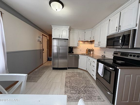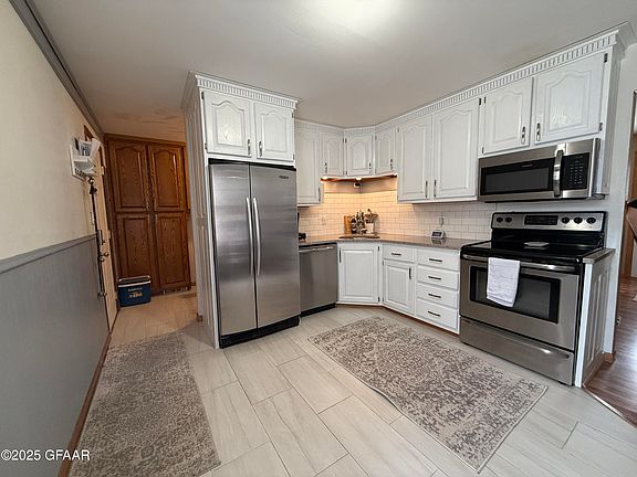 Welcome to this beautifully updated 4 bedroom 2 bathroom home that blends comfort, space and functionality. Step inside to find a modern kitchen with updated finished, perfect for everyday living and entertainment. The bathrooms have also been updated, including a primary suite featuring a spacious bathroom, a large walk in closet with direct access to the outdoor patio. The finished basement inclused a cozy bar area, an additional bedroom and plenty of storage space. Outside you will find a patio and fenced back yard, two detached garages accommodating up to three vehicles plus ample parking space. This home is move in ready and offers the flexibility and room for your lifestyle needs.