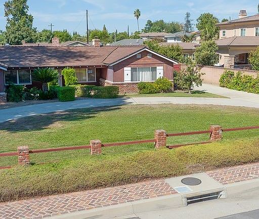 This Arcadia Ranch style home is situated on a large 13,816 sq.ft. lot with a circular driveway. The home features 3 Bedrooms, 2 Baths, living room with brick fireplace, a spacious kitchen with breakfast area which opens to the family room which could be used as a formal dining room. A separate den/office, inside laundry room, central air & heat. Large covered rear patio. Master bedroom has it's own private patio area. Separate storage room with electrical. 2 car detached garage. The rear yard has many possibilities.