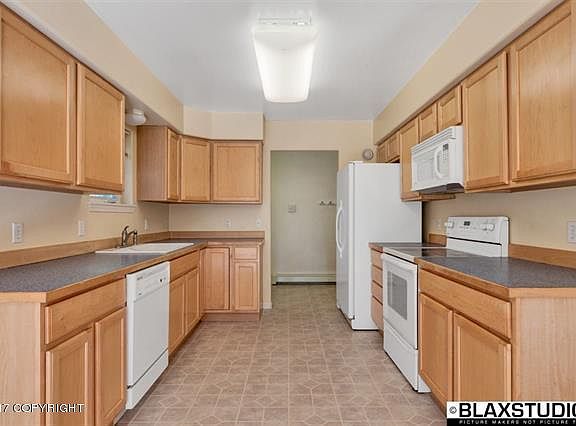 Lovely ranch home conveniently located minutes to Fort Wainwright's back gate. The nice kitchen offers ample space as it is connected to the dining room. The living room has an adjoining nook/office through a pocket door. All three bedrooms are well sized to include the master suite. The Blaze King wood stove helps keep the fuel bills low in the winter. Out back there is a giant shed that will hold a lot of firewood!