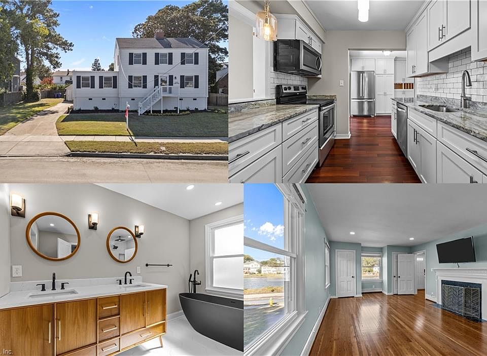 Nestled in the sought-after Larchmont neighborhood of Norfolk, this beautifully updated mid-century home perfectly blends timeless character with modern living. Set on a 0.26-acre lot, the property now offers five bedrooms and 3.5 baths, including two primary suites for ultimate flexibility. A brand-new kitchen addition showcases sleek granite countertops, subway tile backsplash, and premium stainless steel appliances, all opening to a reimagined first-floor floor plan designed for open, effortless living. The home also features a new first-floor half bath, freshly painted interior and exterior, and original hardwood floors that add warmth throughout. Enjoy serene water views year-round and peace of mind with the home’s 2009 elevation. Additional highlights include a 320 sq. ft. oversized garage, newer roof, updated HVAC (2015), and a 2012 boiler. Minutes from Downtown Norfolk, Ghent, ODU, and NAS Norfolk—this home defines modern coastal comfort.