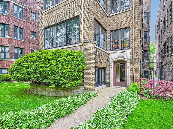 MULTIPLE OFFERS. Long-time owner has improved and meticulously cared for this spacious 3-bed, two-bath condo on a large lot with 2 garage spots and plenty of extra storage space. Start and end your days enjoying north and south-facing sunrooms and your outdoor deck. Host gatherings in the large living room with a gas fireplace and built-in shelving surrounding the hearth. The dining room features a barrelled ceiling, sitting adjacent and open to the living room. These two rooms feature east and west windows, allowing in sunlight to the entire area. The kitchen offers plenty of counter space and solid wood cabinetry. The primary suite and all other bedrooms are generously sized with ensuite bathrooms. The fourth bedroom has been converted to a full laundry room with sink. The solid wood entry door, beautifully-refinished doors and window ledges, and hardwood floors throughout underscore this home's classic quality. Relax or entertain in the lush backyard with a water feature, garden, and patios. This well-managed, pet-friendly building is conveniently located just a half block from the Sheridan bus, and another block east is Loyola Park. Enjoy the beach, playground, and fieldhouse with plenty of metered parking for your guests. This home is also just two blocks from the Red Line and near the heart of vibrant Rogers Park, with its cafes, restaurants, theatres, and lively music venues.