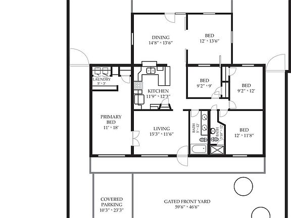Gorgeous and stunning property featuring a block wall with a rolling gate to the covered carport that offers privacy and security. The pavers in the front yard look fantastic and make the front an easy-to-maintain area. Kitchen is C-shaped with beautiful granite countertops and stainless steel appliances that combine beauty and function. Primary bedroom has French doors and is generously sized with tile flooring and recessed lighting. Backyard is large with a covered patio and a storage/work shed! Your next chapter starts here!