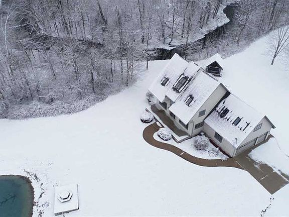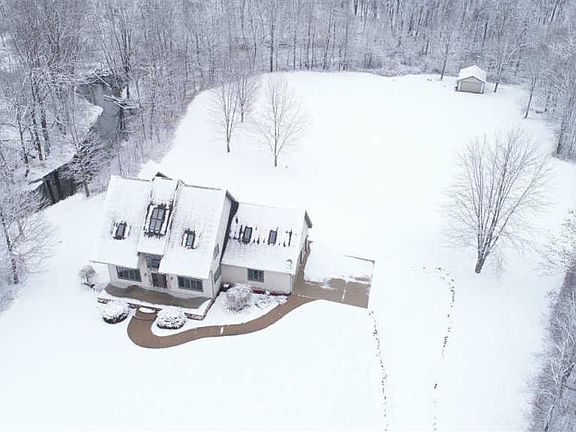 Incredibly Breathtaking Property! Nestled within the trees, this 3 bedroom, 4 bath colonial home in Riley Twp sits on 16.84 acres has so much to offer! Coming up the driveway you will see the HUGE pond and 3.5 car attached garage. Walking through the front door you are greeted by a dual-sided fireplace that shares a view with the living room. Kraft-made cabinets in the kitchen with a center island. Two master bedrooms, complete with Walk-in-Closets, and each with ensuite, full bathrooms. Full finished basement has a 4th bedroom and 5th full bathroom. In the rear of the property, the deck leads to the gazebo that overlooks the river, as well as a second detached garage complete with electricity. If you have been dreaming of a peaceful spot in the country, look no further!