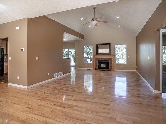 Beautiful home on an acre of land in Freeman school district with over 2300 sq ft on the main floor with lots of flexible spaces. Over 2800 finished sq ft. As you walk into the home you are greeted by cathedral ceilings, beautiful hardwood floors and cozy wood burning fireplace in main living area. Kitchen features granite countertops, stainless steel appliances, and eating bar. Primary suite offers double sinks, garden tub, separate 5 ft shower, and large walk-in closet. Full in-law set up has separate entrance with full kitchen, bathroom, stack up washer/dryer, private deck, and option of being either a one bedroom or 2 bedroom in law unit. Office/den/craft room area not included in bedroom count. Upstairs can be used as a second primary suite or 2nd family room. Over 2000 sq ft of unfinished storage area in basement. There is so much flexibility. Oversized 2 car garage. 15 min to the South Hill shopping or Spokane Valley. Some pictures are virtually staged. ACTIVE SECURITY SYSTEM