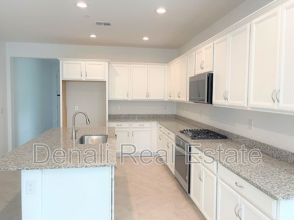 No Application Fees. Brand new 3 bedroom, 3 bathroom Peoria home located on a cul-de-sac lot in the desirable Cowley community. This newly constructed home features tile flooring in all high traffic areas with upgraded neutral carpeting in the living room and bedrooms, recessed LED lighting, upgraded window blinds, ceiling fans installed in each bedroom and neutral paint throughout. The large open kitchen includes granite countertops, upgraded cabinets, a spacious island, separate pantry, gas cooktop, built-in oven, dishwasher and microwave. The split level floor plan offers an oversized primary suite with dual walk in closets, an extended double sink vanity and a large walk in shower. Two additional bedrooms and two additional full bathrooms provide excellent flexibility for guests or office space. The home also features a large laundry room with storage cabinets and a spacious two and a half car garage for ample parking and storage. The backyard will include granite rock desert landscaping for easy maintenance.