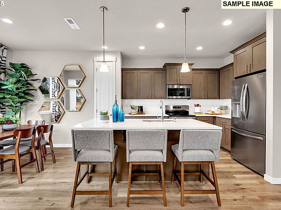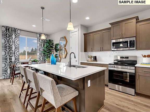 Amazing Greenspace lot with crazy good incentives! This three bedroom, two and half bath home packs incredible features into 1,609 square feet. With entry access from the garage or covered porch, the great room opens up to the kitchen, complete with quartz slab counters, full kitchen backsplash, electric glass cooktop, kitchen island and pantry. The dining area sits off to the side, making family meals a cherished occasion, while boasting plenty of space in the great room for celebrating all of life's special moments. The incredible standard features keep this home in step with current trends, including 8ft doors and 9ft ceilings on main floor. Pics are of similar home. Est completion date is April 15th