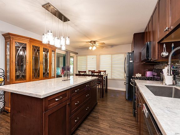 Desirable 4 bedroom Home in the heart of Poway!!! Several upgrades which include, Newer Flooring throughout, Kitchen upgraded, Windows & sliders, Newer roof, Solar, Newer HVAC system, hot & cold water pipes done with PEX piping, above ground pool. Fireplace and Vaulted Ceiling in the Living Room. There is a 200 sq ft bonus/patio room off of the kitchen,great for a much needed office, exercise room or playroom. All in the highly desirable Poway School District close to all schools. No HOA Fees or Mello-Roos, Come see all this house has to offer!!!