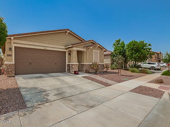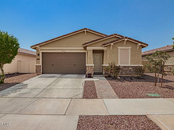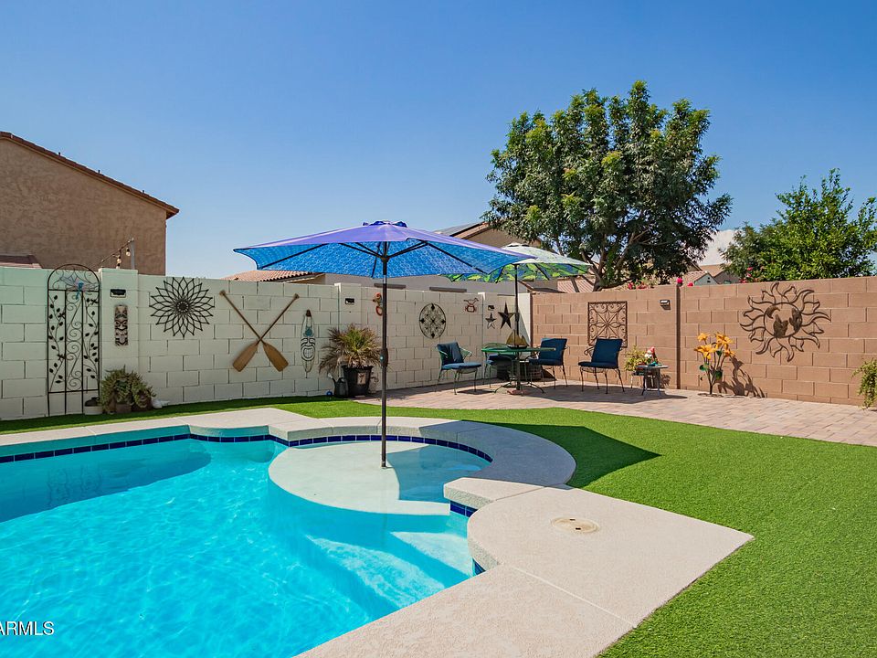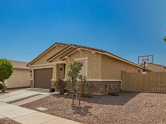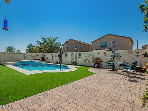 Discover all the charm of this gorgeous 5-year-old 4-bedroom 3-bathroom home in the beautiful neighborhood of Homestead at Marley Park! Over $60,000 put into the backyard with custom pool, pavers and artificial turf, this well-manicured landscaped yard, also features an RV gate. Inside, you'll find sizable living areas featuring tile flooring, an abundance of natural light, and a neutral palette, with plenty of space for entertaining. The open-concept kitchen features staggered cabinetry with crown molding, gas cooktop, tile backsplash, granite countertops, an island with a breakfast bar, SS appliances, and a walk-in pantry. The backyard will be your oasis, including a covered well-laid paver area, artificial turf, and a relaxing pool.