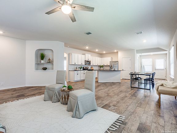 Welcome home to this lovely 4-bedroom, 2-bathroom residence built in 2021, featuring a thoughtfully designed open-concept floor plan that's perfect for both everyday living and entertaining. Light-filled living spaces flow seamlessly into the kitchen and dining areas, creating an inviting setting for gatherings with family and friends. The spacious primary suite offers a tranquil retreat, complete with a beautifully updated master shower for a spa-like experience. Nestled in the highly desirable Valley Ranch community, this home is zoned to top-rated Northside Independent School District (NISD) schools, with the added convenience of the elementary school located right within the neighborhood, making morning drop-offs a breeze. Valley Ranch offers an exceptional lifestyle with resort-style amenities including a state-of-the-art fitness gym, a stunning pool with water slides, a splash pad, playground, tennis and basketball courts, scenic walking trails, and a peaceful fishing pond. From family fun to active living, this community truly has it all. Come experience comfort, convenience, and connection. This home is ready to welcome you!