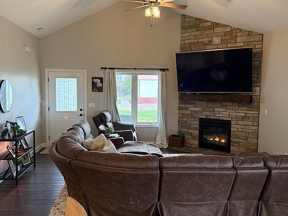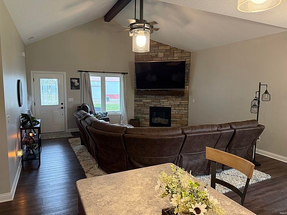 Welcome Home to Maples, IN****This stunning 3 bedroom, and 2 full bathroom home***Built in 2023 and finished in 2024 offer the perfect combination of modern design serene country living. With 1466 sq. ft. lot, this home is perfect for anyone looking for comfort, style, and privacy. Nestled in a quiet addition with open fields behind you, you'll enjoy the peaceful charm of country living while still being close to everything you need. OPEN FLOOR PLAN** The spacious living area features soaring CATHEDRAL ceilings with a beautiful WOOD BEAM accent, creating a warm and inviting atmosphere. Gas fireplace perfect for relaxing evenings at home. Master bedroom with an en suite bathroom and walk in closets, Beautiful warm and inviting kitchen with an island all appliance are less than a year old and stay with the home. A 2 car garage with plenty of storage space and a concrete drive way , an oversized concrete patio in the back with a field behind it for privacy and picturesque view. Don't miss out on this incredible opportunity to own a like new home in a quiet and sout after area.