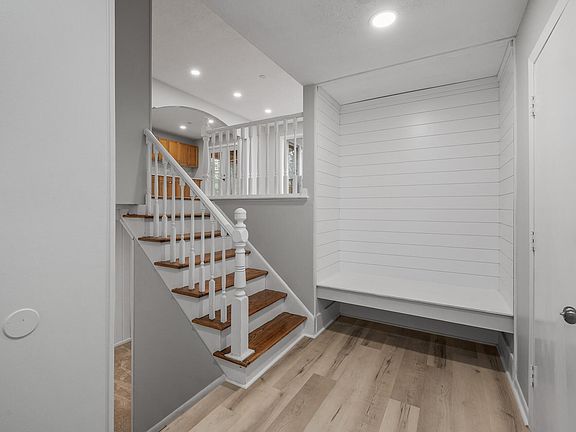 resurfaced hardwood floors on main level. 2 fireplaces! Sky light in main level bathroom, shiplap entry