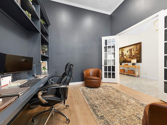 Discover unparalleled living in this Trendmaker home, perfectly set on a quiet cul-de-sac in The Groves. Step through the impressive stucco and stone façade into a grand entry with a signature umbrella ceiling. All bedrooms are conveniently located on the first floor. The primary retreat is spa-like with a soaking tub, separate shower, & dual custom walk-in closets. The kitchen island features exotic granite countertops, a double oven & a 5-burner gas cooktop. The expansive living room is anchored by a gas log fireplace. Upstairs, the media room with included projector, screen, and speakers & half bath is the perfect entertaining space. Dedicated utility room & a massive, built-out Texas basement with dual access. Enjoy the privacy in your backyard screened-in porch. A 3-car tandem garage with ceiling storage. Residents enjoy exclusive access to an array of amenities: resort-style pools, fitness center, miles of trails, fish pond, multiple parks, splash pad & athletic fields.