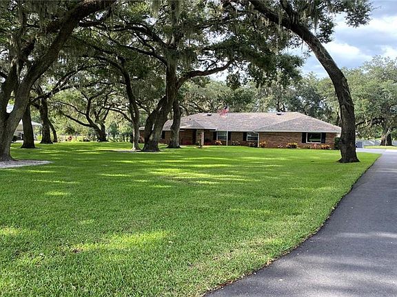 Move in ready, NO HOA or CDD fees. This completely remodeled pool home sits on a gorgeous 1.41-acre lot with lots of majestic oak trees. The $250,000 remodel included Custom Master Bath, new kitchen, new flooring and much more (see attached list). 4 bedrooms 3 baths, the formal areas include a breakfast nook, breakfast bar, dining room, living room and a casual living area w/fireplace. There is also an 840-sf bonus room/in-law suite complete with its own kitchen, living area, dining area, laundry room and full bath. It overlooks the pool through 3 sliders and has a separate entrance. Circular drive with 4900 sf parking pad 2-car attached garage plus a 1200 sf detached garage/workshop and a detached 600 sf metal workshop. Wood floors in the Master Bedroom. This fabulous home has mature oak trees, is private and tranquil and has room for an RV or boat and an RV power outlet. Country living at its best. Enjoy your coffee at the breakfast table overlooking the pool or step out on the lanai through the French doors off the living room or from the Master Bedroom. This estate neighborhood has comparable estate homes throughout and is conveniently located near I-4, I-75, and highway 60. Please call to schedule your private showing today.