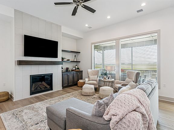 A Lakefront Lifestyle, Designed for You Imagine waking up each day to the gentle shimmer of the water and the sound of nature just beyond your windows. This stunning new patio home offers more than just comfort—it offers a lifestyle surrounded by beauty, convenience, and thoughtful design. Put away your lawn mower, hang up your shovel when it snows, and pay less for trash! This is YOUR time! With no steps and single-level living, this home is as practical as it is elegant. The open floor plan features three bedrooms and two baths, anchored by a bright, airy living space where life naturally comes together. A 12-foot boxed ceiling entryway creates a dramatic welcome, while the large quartz kitchen island becomes the perfect spot to gather with family and friends. From the living and dining areas to the master retreat, expansive picture windows frame sweeping lake views, filling the home with natural light and connecting you to the outdoors. Cozy evenings by the gas fireplace, finished with a contemporary tile to the 10’ ceilings and accented by open shelving, add warmth and style. The master suite is a true sanctuary, featuring its own lakeside view and a spa-inspired bath with a custom walk-in shower. Everyday tasks are simplified with a laundry room that flows into a seasonal closet, adding function to luxury. Step outside to the screened-in concrete deck, where mornings begin with quiet reflection and evenings end with the glow of sunset over the water. Nestled within a peaceful neighborhood with a private entrance, yet just one mile from groceries, shopping, and medical care, this home offers the perfect balance of privacy and convenience. Here, every detail has been designed to create not just a home, but a place to live beautifully!