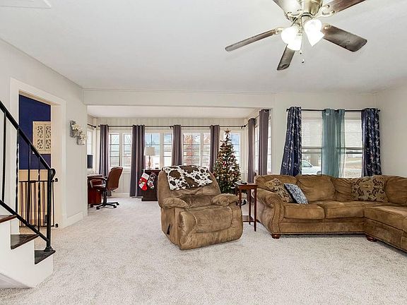 Absolutely charming bungalow. Open and inviting living room with attached, window filled sunroom. Brand new carpet on main level. Formal dining with built in hutch. HUGE kitchen with nearly endless counterspace. All kitchen appliances stay! 2 bedrooms down, 2 up. Full baths with shower over tub on both levels. Clean, unfinished basement for storage. Oversized fenced/grass/treed lot, nearly an acre! Huge detached 2 car garage. Nothing to do but move in!