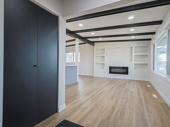 Huge lotStunning vinyl plank flooringQuartz countersNewer windowsBright open layoutVaulted ceilingsExposed beams