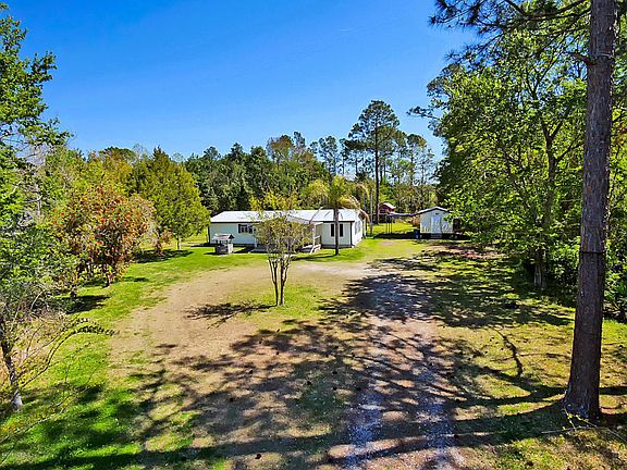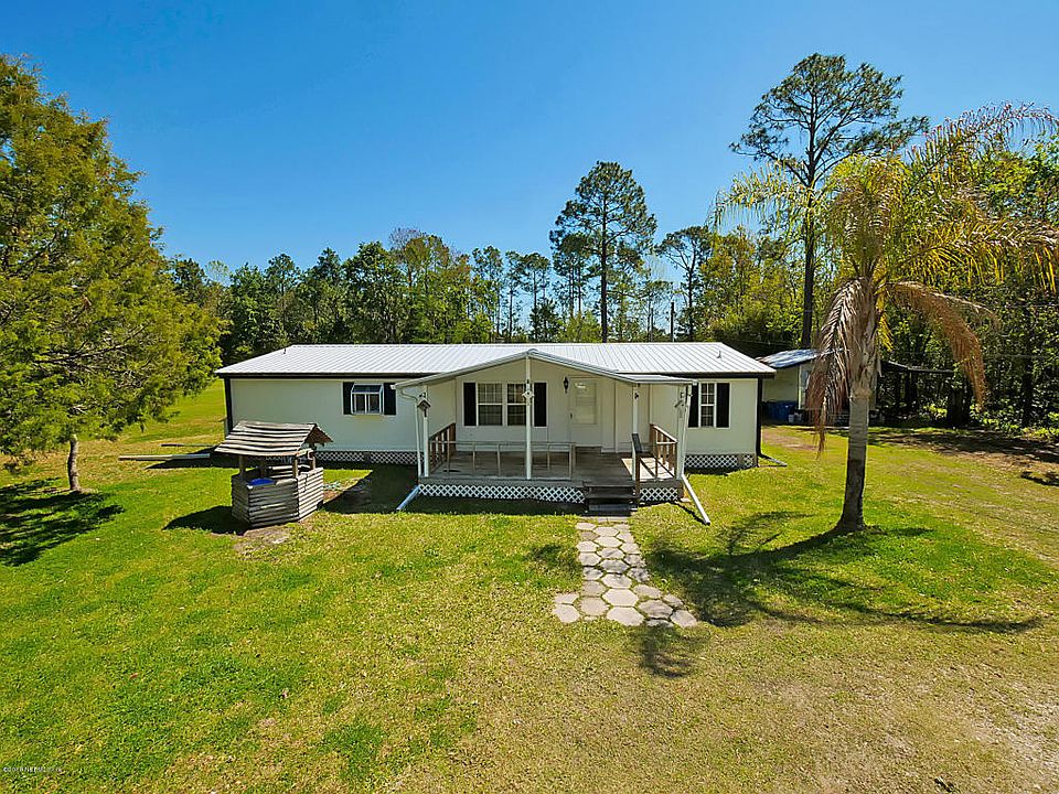 1.5 Acres of country living without sacrificing convenience. RiverCity Marketplace, I-295 and I-95 within minutes. A large front porch to welcome you home to this three bedroom, two bath mobile home. *New METAL ROOF* Multiple storage sheds/outbuildings for the hobbies and pets. *New AC UNIT* Farmhouse style kitchen with ample storage, prep space and dining area, wood burning fireplace, inside laundry and split-bedroom floor plan with large family room. Owners Suite features two closets, large soaking tub and separate shower. Property on well water to keep expenses minimal and the gardens growing. Call today to make this rural gem in the heart of it all your home sweet home.
