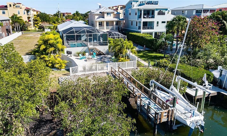 Coastal living at its finest! Bring your boat and prepare to be impressed by this impeccably maintained and beautifully upgraded waterfront home, located just minutes from Tampa Bay with no fixed bridges. NO HOA or CDD, this stunning home built in 2019 has been designed with every detail in mind! Situated on the water with no direct rear neighbors, you are in the perfect location to watch the picturesque sunsets and have friendly dolphins or manatees stop by! Your backyard oasis begins at the 46ft trex dock and 11k lb boat lift. Sailboats are welcome! This is also a great spot to fish or drop in your kayak to explore the beautiful waterways! From the dock, the pavered pathway leads to the fully fenced backyard which has been professionally landscaped with low maintenance shells, beautiful palm trees, specialty lighting, and design touches all around. The built in firepit is the perfect place for gathering, and there are even raised and fully irrigated garden beds. If you enjoy entertaining, this home is perfect! The resort style pool area is private, and includes a heated pool and spa, outdoor shower, and full outdoor kitchen complete with granite countertop, built in grille, stainless hood range, sink, refrigerator, and mounted tv. In addition to design details, this home is also State of the Art! There are (2) TESLA Powerwall backup battery systems that can power the entire home when services are down. It buys electricity at the lowest rate and uses the power at most expensive times. The TB water softener and filtration system covers the entire home, and there are (2) 100-gallon propane gas tanks which run the Rinnai tankless hot water heater, stove in kitchen, and outdoor grille. This smart home does include an exterior camera system, video doorbell, Nest learning thermostat, as well as automated shades in living and dining area. The floorplan is open and inviting with a unique indoor/outdoor feel that extends to the beautiful kitchen with top level granite, large center island, stainless appliances/range hood, custom soft close cabinetry and undermount lighting. The high ceilings, crown molding and plantation shutters add the finishing touch! The owners suite with en-suite bathroom is the perfect place to unwind, and the large walk in closet is a dream! The secondary bedrooms and bathroom are spacious, and the laundry room includes custom cabinetry. The oversized 2-car garage offers extra space for storage or classic cars! This home is the focal point of the neighborhood with amazing curb appeal that continues the coastal vibe with a metal roof, professional landscaping with gorgeous palm trees and shells, fully pavered/extended driveway, and outdoor lighting. Every single detail has been meticulously chosen and it shows! Would also make for an amazing Income Property or Vacation home! Home is a short walk to Apollo Beach Nature Preserve and Circles waterfront restaurant. Apollo Beach is conveniently located close to major highways, shopping and restaurants, and is a short boat trip across the bay to Downtown Tampa, St Pete, and gorgeous gulf beaches. The BEST of Florida living!