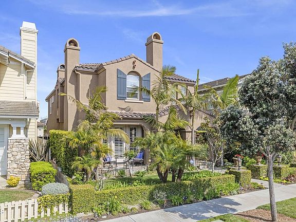 Fantastic Seabridge home with ample privacy and a very desirable floorpan! This is a spectacular offering on sought-after Coral Island. This 4 bedroom home with a Spanish-style elevation is in a guard gated community. Enjoy this beautiful neighborhood with easy access by paths, a footbridge, boat or streets to dining, retail, the marina and the beach. The resort-style amenities feature a fitness center, pool, spa and event space. Enter the home into a beautiful formal living room with fireplace and French doors that open to the porch, overlooking the lushly-landscaped garden and front yard. The home has a large great room with an open kitchen with white cabinets, large dining area and family room with fireplace and custom built-in entertainment center, with a side-yard accessible through French doors. This space is Southwest-facing and receives sun throughout the early afternoon until sunset. There is a bathroom with a shower on this level as well as a main level bedroom, which could also be used as an office, complete with built-in bookshelves and storage. Upstairs, the spacious primary suite has double-door entry, a retreat area with fireplace, large soaking tub, dual sinks, an oversized shower and a spacious closet. Two more bedrooms, a sizable loft space, a hall bath and a laundry room round out the features of the second level. All flooring in the home is hard-surface (no carpet), which is great for the coastal lifestyle! The exterior of the home was recently re-painted. Additional notables include a two-car rear-loading garage with storage; a large kitchen pantry; and air conditioning. Enjoy the Seabridge lifestyle that has become popular both for weekend getaways and full-time resort-style living.