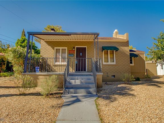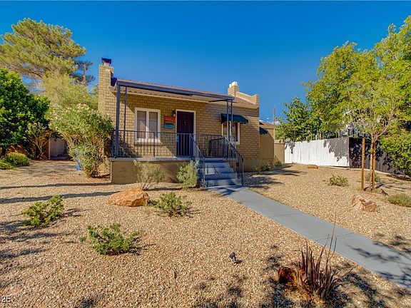 Darling historic home, walking distance to downtown Boulder City. This wonderful home features a wood burning fireplace in the living room and a dining area with built in hutch. Hardwood and ceramic tile flooring. The 1,156 sq ft includes two bedrooms plus an 8x8 sitting room and two full bathrooms. Hallway has two large storage closets. Lovely kitchen cabinets with glass inserts. Separate laundry room with stackable washer and dryer. Covered patio leads to a nice size back yard. A must see!