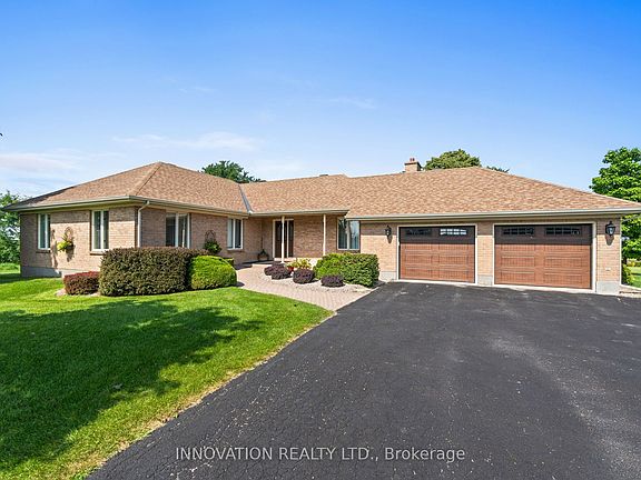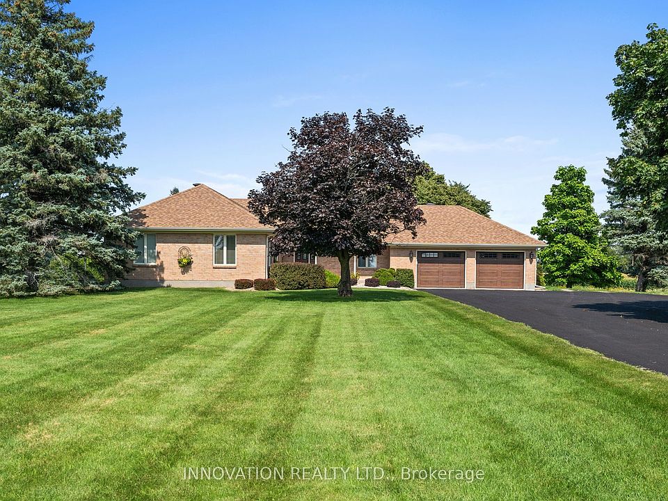 Welcome to 1332 Donald B Munro Drive ~ Where Charm Meets Acreage! A lovely bungalow beautifully set on approximately 5.43 acres in the heart of Carp. This very well maintained 3-bedroom, 2 bathroom home is set on a peaceful, private lot in one of Carp's most desirable neighborhoods. With its warm character and thoughtful layout, it offers comfort, space, and functionality. Step into a bright, open main floor featuring vinyl flooring throughout. The spacious living room is filled with natural light and showcases large windows and a cozy floor to ceiling brick wood burning fireplace. A separate dining room sets the stage for memorable gatherings, while the large eat-in kitchen is a chef's dream complete with stainless steel appliances, ample cabinetry, generous counter space, and the added convenience of main floor laundry, The exquisite primary bedroom features large sunlit windows. The two additional bedrooms are generously sized with easy access to the main bath. The added convenience of main floor laundry. Downstairs, the partially finished lower level offers a large family and recreation room and abundant storage, perfect for hobbies, a home gym, or future expansion. Brand new geothermal furnace for the most cost effective heating. Step outside through patio doors to truly spectacular grounds. Surrounded by nature, this property boasts vibrant perennial gardens, mature trees, wide-open green space, and a double car garage. Whether you're hosting summer gatherings, gardening, or simply enjoying the tranquility, this outdoor oasis is a rare find. Located in vibrant Carp, you're just steps from top-rated schools, a modern medical centre, rinks, tennis courts, artisan bakeries, cozy cafés, and the beloved Carp Farmers Market. Outdoor enthusiasts will love nearby trails, Ottawa River access, and 5 minutes to Irish Hills Golf & Country Club and Greensmere Golf & Country Club. This home is the perfect blend of small-town charm, active living, and peaceful acreage.