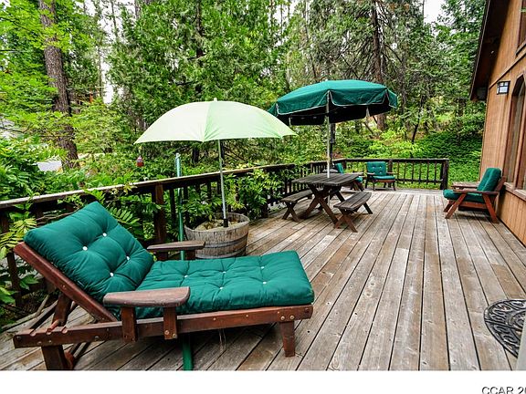 Beautiful dogwood and pine surroundings set back off a curve in the quiet road just a short walk to hundreds of acres of forest land, then you can hike straight through to Big Trees State Park free of all civilization! Just below the chalet's prow deck there is a seasonal creek fed by snow melt from the high country and you can still listen to it flowing this July. Inside huge cathedral ceilings lined with glistening wood show off the open floor plan, roomy kitchen with pantry closet, and loft rec room. Master is on the main with big walk in closet, 2 more bedrooms upstairs (one with Murphys bed so it can also be an office) and 2.5 baths total. Outside on two separate decks, it is peaceful, the stars are easier to see than the neighbors and the mountain air will turn your life around.
