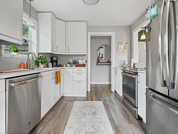 Step into the ultimate entertainment space with this captivating 1.5-story home. Indulge in the newly updated covered patio, complete with a fan and TV mount, all within a privately fenced backyard. This home boasts updated flooring, a modern kitchen with quartz countertops and a breakfast bar, abundant natural light, a cozy wood-burning fireplace with new surround, and a renovated bathroom. The roof was replaced a year ago with 'class 4 impact' shines on both the house & garage. Not to mention, the walk-up attic offers potential for further customization. The lower-level family room, vinyl siding, and more make this home an absolute standout! Don't miss out on this incredible opportunity to make this your dream home.