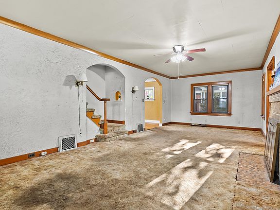 Deep yardOak hardwood floorsArched doorwaysWelcoming front porchPrivate outdoor play spaceWoodwork throughout the home