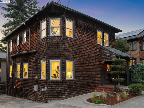 A lively California lifestyle awaits in this classic brown shingle 4BD/1.5BA home in one of Berkeley’s most sought after neighborhoods. Just blocks from award winning Gourmet Grotto, this 1792 SqFt brown shingle boasts light filled living and dining spaces and four gracious bedrooms upstairs. Step inside the beaming foyer and you’ll ease into the home’s perfect flow. The oversized formal living/dining room has an elegant coved ceiling with a stately mantle and fireplace. Gorgeous wood floors span through an open archway into another living area with built-in bookcases and cabinets, offering space for a sunny office, family room, or dining right off the updated kitchen. A powder room is nearby, and a laundry room is right outside the kitchen door. Off the small deck, the backyard has mature trees and great space for entertaining or play. Back inside, the refined staircase leads from the foyer to four bedrooms with nice closets and bonus spaces, a large linen closet, and an updated full bath. Ample storage is below the home, and a long driveway offers plenty of off-street parking. With great schools, short walks to Live Oak Park or the Berkeley Rose Garden, and a short drive to Tilden Park with hiking, swimming, and Little Farm, this is a great home to enjoy the best of Berkeley.