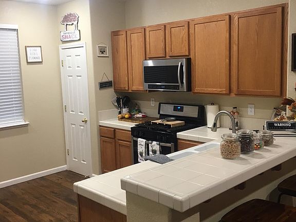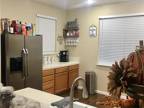 Beautiful home in a quiet neighborhood. The living room is spacious and open, has a new ceiling fan with beautiful real wood flooring (recently resurfaced) throughout the main living areas. New Behr Marquee paint throughout the home, and new faux wood blinds in every window. The kitchen offers a fabulous pantry and ample counter space with breakfast bar, and a gas range., The bedrooms all offer high ceilings, new ceiling fans, new carpet, and an abundance of storage. New LVP flooring in the bathrooms. The Master boasts a walk in closet and the ensuite bathroom has dual sinks along with a shower/tub combo. The closet doors are wrapped and inside the garage for future use. Ring Camera included. 3 car garage for all your storage needs, and the backyard is your canvas that is ready for your design! Close proximity to park with grassy field and play equipment. This open floorplan is ideal for hosting and entertaining.